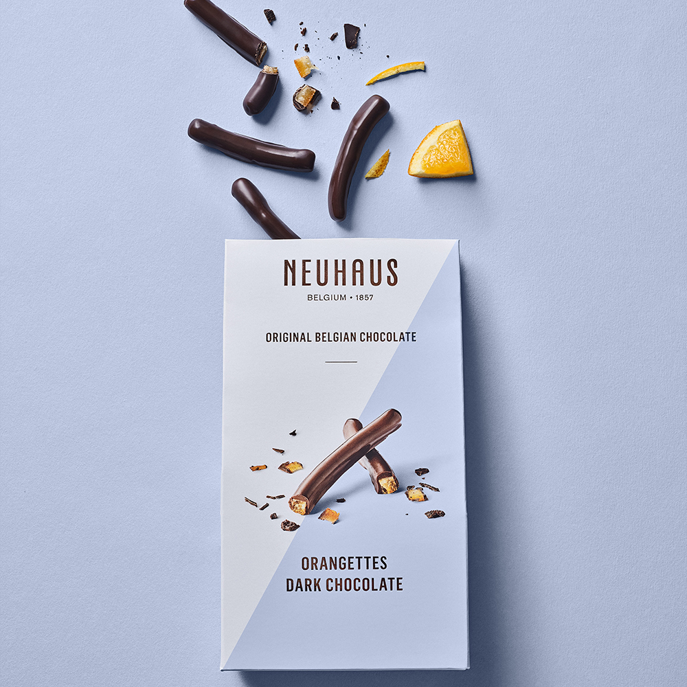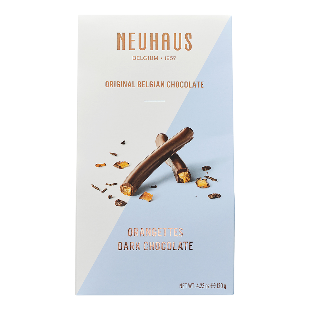 The Belgian Chocolate Moments – Orangettes (120 g) contains +/- 13 Neuhaus alcohol-free orangettes. Artisanal candied orange zest dipped in intense dark chocolate. All Neuhaus chocolates are crafted in Belgium, in our atelier near Brussels. It is our commitment to keep it that way. A delicious snack for chocolate lovers.