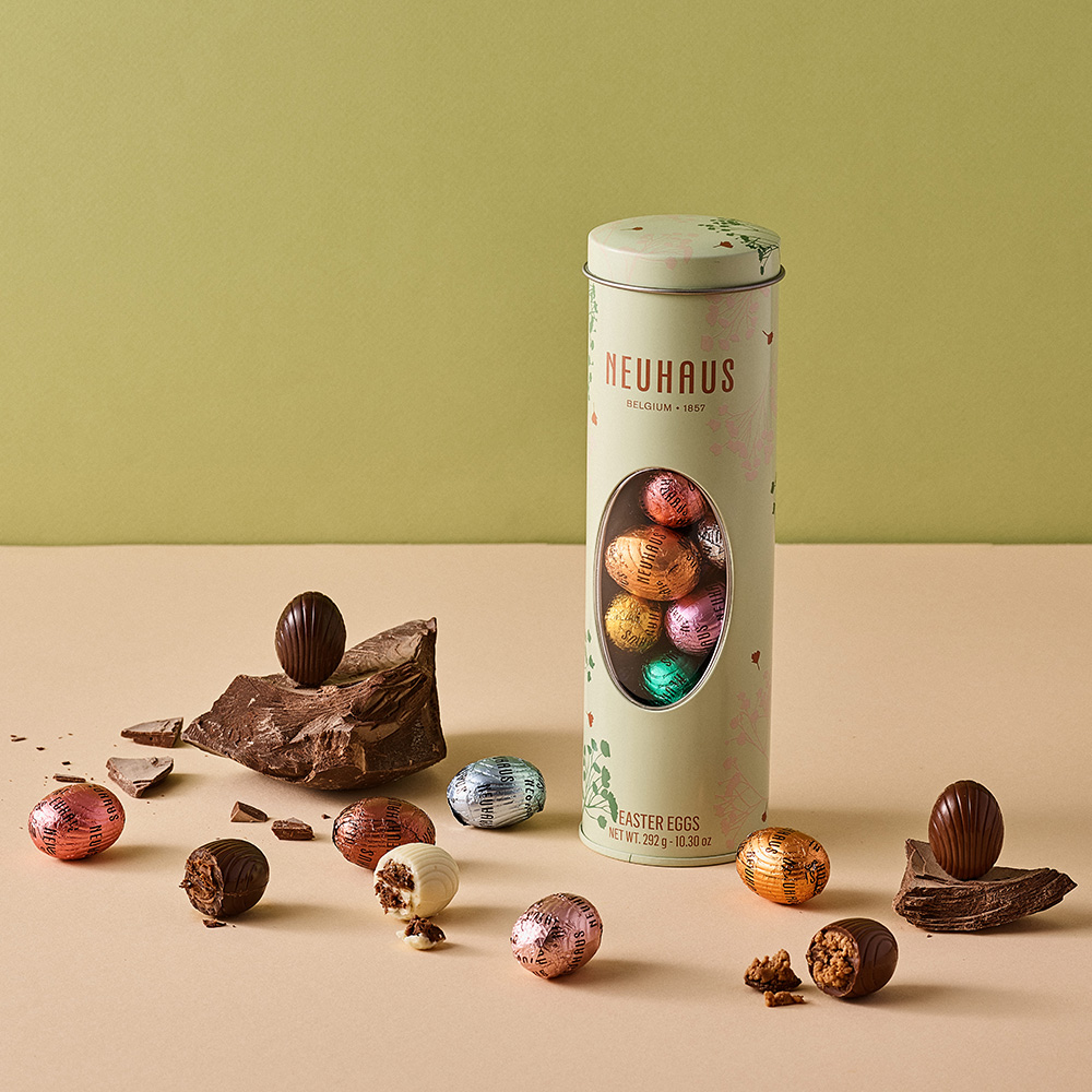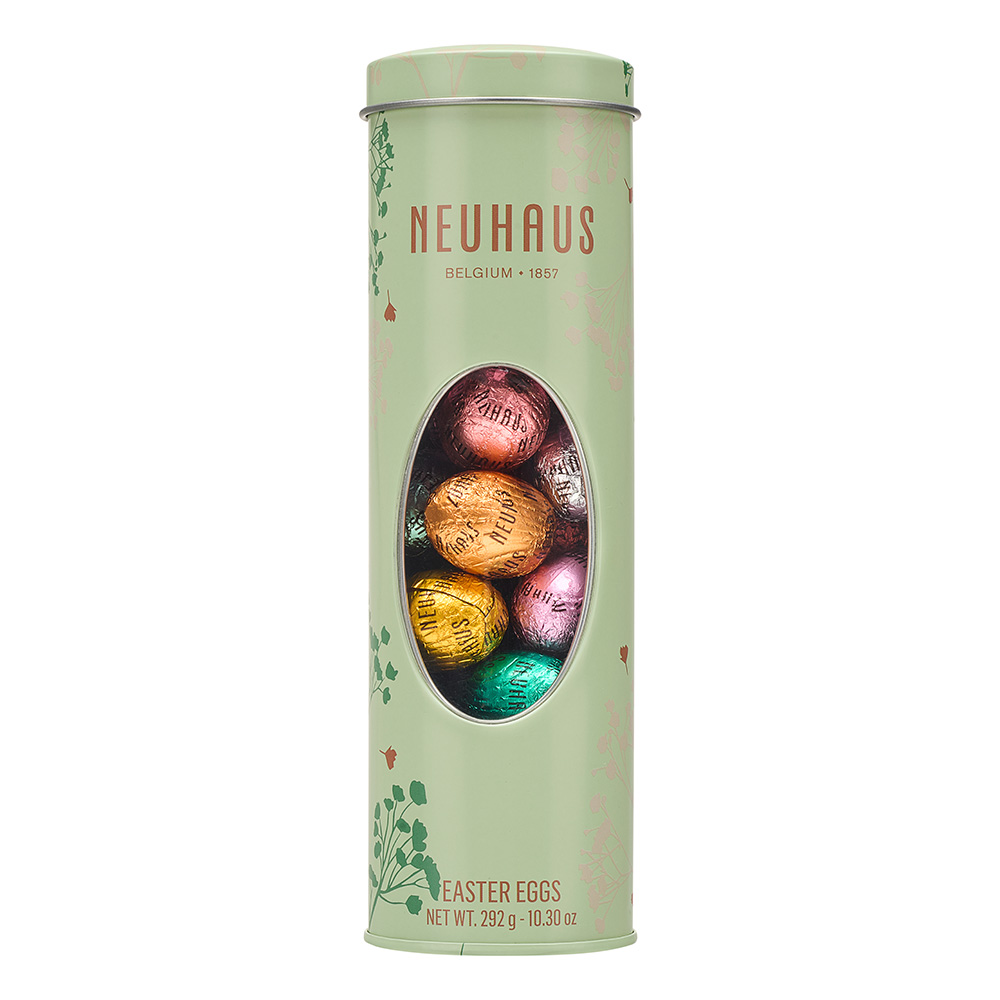 The Easter Egg Tube (292 g) contains +/- 27 Neuhaus Easter eggs in dark, milk and white chocolate. Part of our new Standard Easter collection, this reusable metal tube comes to life in fresh spring colours of vibrant green, enriched with delicate floral patterns inspired by blossoming nature. Our sourcing specialists carefully select the finest ingredients from around the world to ensure that every Neuhaus product is a harmonious symphony of taste and texture.