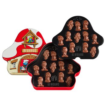 Smurfs fans of all ages will delight in the new Neuhaus Smurfs Tin gift box! The classic, colorful Smurfs mushroom house has been recreated in a collectible gift tin. Inside await 24 delicious pralines in crackling Belgian chocolate shaped like your favorite Smurfs.