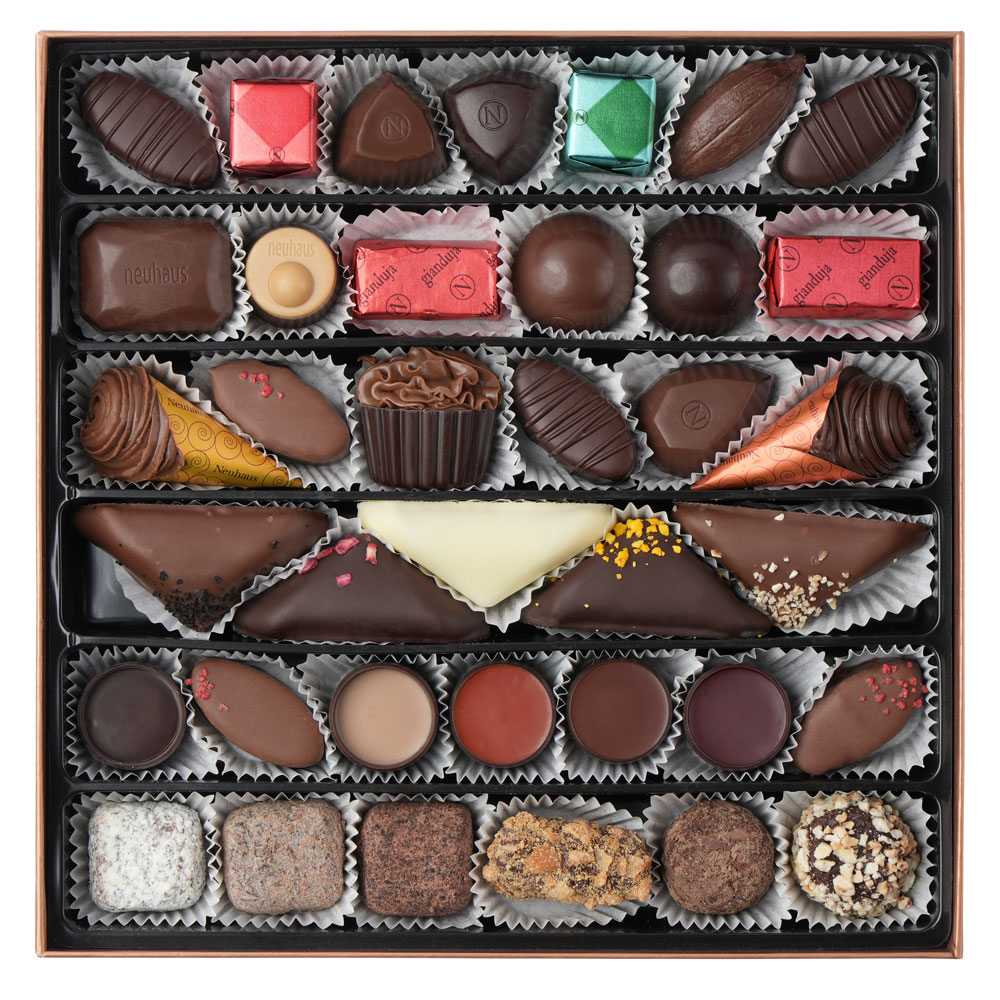 Elegantly displayed in a Prestige gift box, this chocolate assortment is a wonderful VIP gift idea for loved ones, dear friends, and important business gifts.