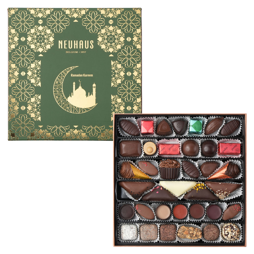 Indulge in the spirit of Ramadan with this exclusive luxury gift box, carefully selected 37 of most special milk, dark, and white Belgian chocolates to enhance the joy and blessings of the holy month.