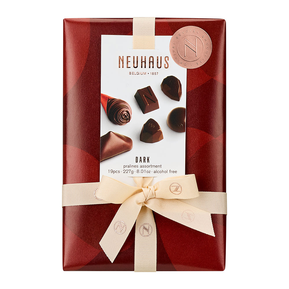 The Valentine All Dark Ballotin (227 g) contains +/- 15 iconic Neuhaus chocolates; a selection of fresh cream, praliné, ganache and gianduja filled pralines. Beautifully wrapped in red paper inspired by an abstract heart design, and finished with an elegant bow, this ballotin makes the perfect Valentine’s Day gift. Based on our craftmanship, we carefully select the best ingredients from around the world to ensure that every Neuhaus creation is a symphony of taste and texture.