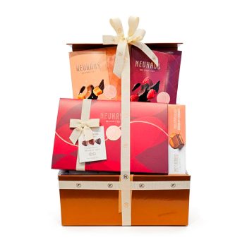 sugar, dark chocolate (cocoa mass, sugar, butter oil (milk), cocoa butter, emulsifier: soy lecithins, flavour), gianduja (sugar, hazelnuts, cocoa butter, cocoa mass, whole milk powder, emulsifier: soy lecithins, butter oil (milk), flavouring), white chocolate (sugar, cocoa butter, whole milk powder, emulsifier: soy lecithin, flavour), cocoa mass, whole milk powder, cocoa butter, glucose syrup, hazelnuts, dark chocolate (cocoamass, sugar, fat reduced cocoa powder, butter oil (milk), emulsifier: soy lecithin, flavour), butter (milk), cream (milk), stabiliser: sorbitol; humectant: glycerol;shea butter, coconut fat, invert sugar syrup, almonds, raspberry, skimmed milk, flavours, cocoa powder, caramel paste (glucose fructose syrup, sweetened condensed milk (sugar, milk) , coconut fat, water, humectants: glycerol of rapeseed, emulsifier: soy lecithin, salt),apple puree, honey, candy sugar syrup, pecannuts, mandarin, wheat flour, water, almond paste, coffee, emulsifier: soy lecithin, mono and diglycerides of fatty acids;butter oil (milk), colour: apple concentrate,beta-carotene,blackcurrant concentrate,paprika extract,radish concentrate, spirulina extract;sugar syrup, whole milk, skimmed milk powder, sesame oil, sunflower oil, caramelised sugar, dextrose, salt (Guérande), sesame seed, whey (milk), salt, vanilla, egg, spices, raising agent: ammonium carbonates,disodium diphosphate,sodium bicarbonates, sodium carbonates; acid: citric acid;cinnamon, chili peppers, wheat starch.